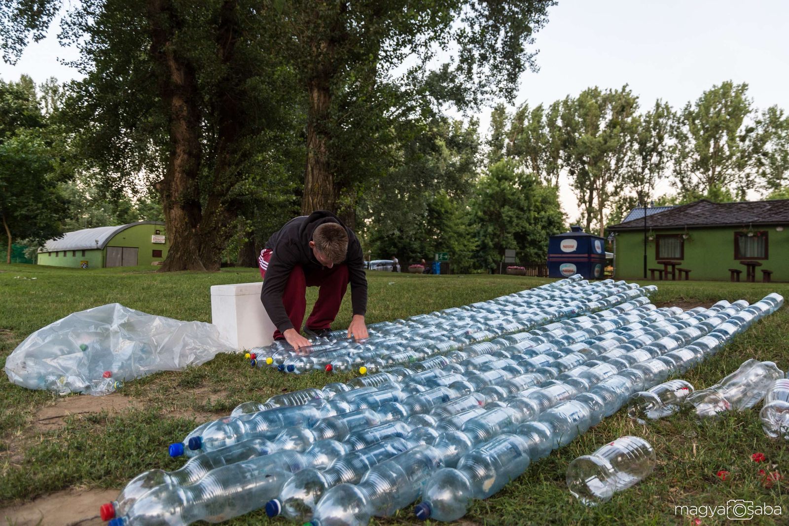 After the landing of the Transcarpathian race, the large shipbuilding is starting on the Tisza shore of Szatmárcseke, where teams will build 21 boats, each for 4-8 persons, at the same time –more than 30,000 PET bottles are becoming part of the hulls. Among the teams we can find the boats of radio Tilos (Tilos means forbidden) and Henkel for the second time, the veteran Tisza2, the devoted volunteer team of Siemens (Evező-SÖK), the allied Aztakeservit.com and the Municipality of Cigánd, the returning Prezi, and NHKV Plc. coordinating the Hungarian waste management system, as well as FŐTÁV Plc. and FŐTÁV-Komfort Ltd., representing public (district heating) companies from the Hungarian capital, and many others. This year, a unique international expert boat will navigate thanks to the JOINTISZA project aiming to renew the water management plan of Tisza River Basin and supporting the aims of the Danube Region Strategy. On the JOINTISZA boat, water and waste experts from 8 countries in 4 continents (India, Morocco, United States of America, United Kingdom, Serbia, Slovakia, Italy and Norway) will travel arriving to the call for help of the Tisza!