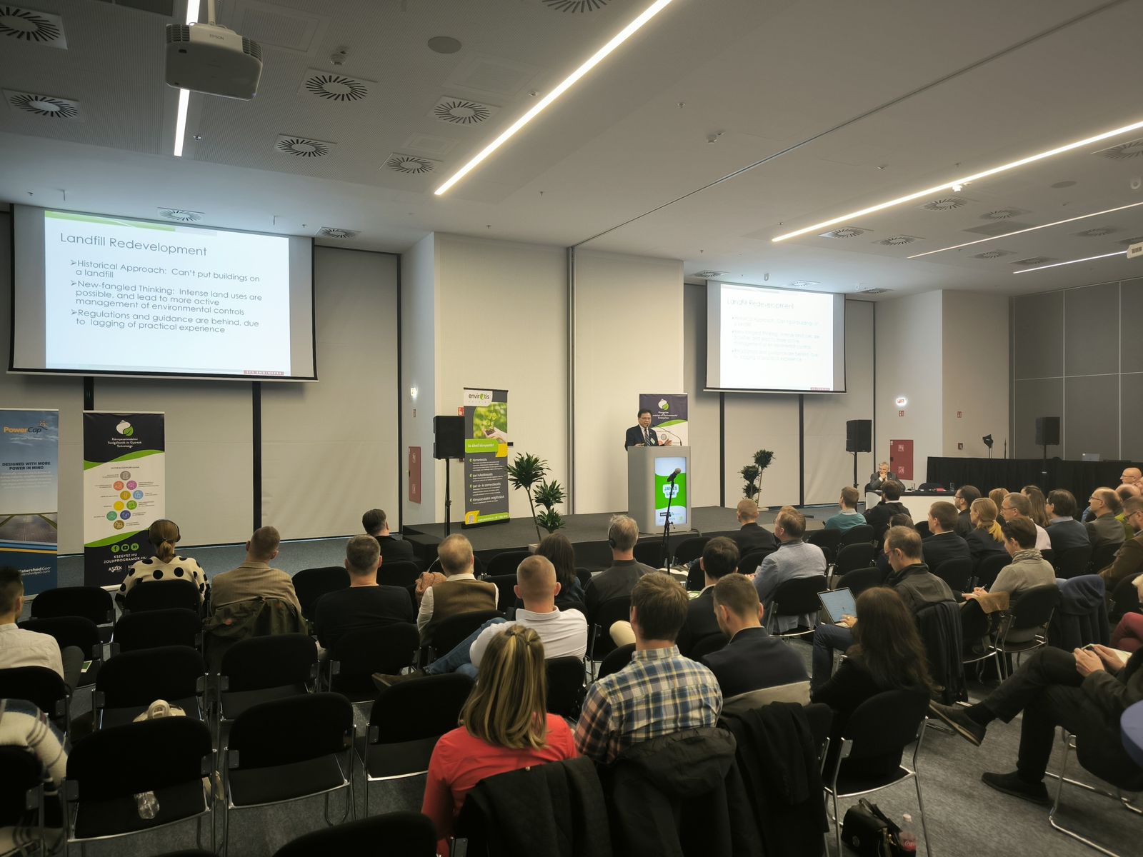 Az ENVIRONTEC powered by Ökoindustria második napján, nagy érdeklődés mellett zajlott a Környezetvédelmi Szolgáltatók és Gyártók Szövetsége (KSZGYSZ) szervezésében a RE:BROWN kármentesítés és barnamezős beruházások c. konferencia. A konferencia lehetőséget biztosított a szennyezett területek hazai és uniós kármentesítési kérdéseinek, aktuális problémáinak, a célok-tervek, jogalkotási és végrehajtási feladatok megvitatására, a sikeres projektek, új technológiák bemutatására, valamint a barnamezős területek új funkciókkal való felruházásának ismertetésére.